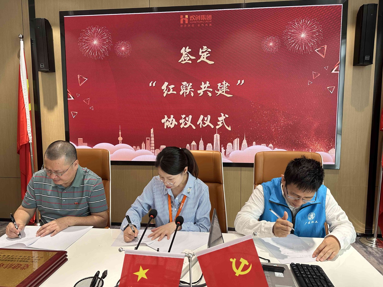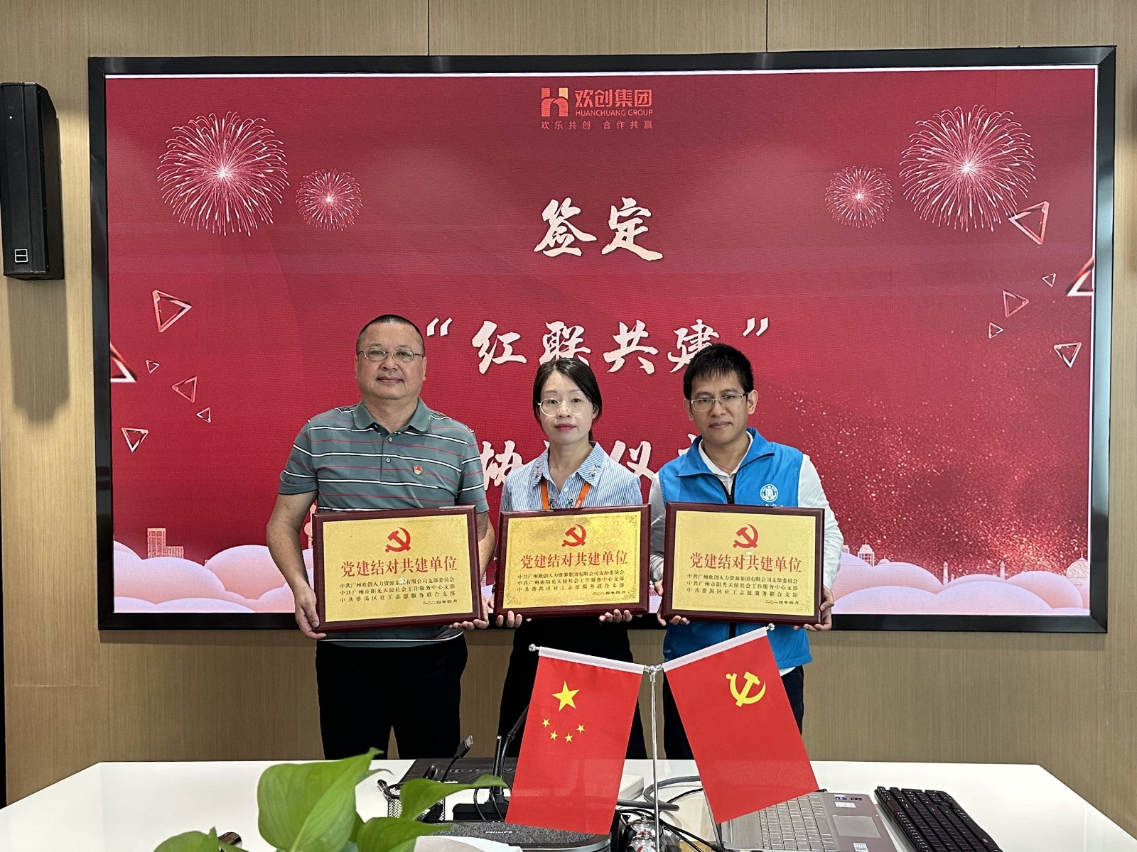 2024年3月28日上午,中共华体会官方网站支部委员会、中共广州市阳光天使社会工作服务中心支部委员会、中共番禺区社工志愿服务联合支部委员会,在欢创集团党员活动室开展红联共建活动。