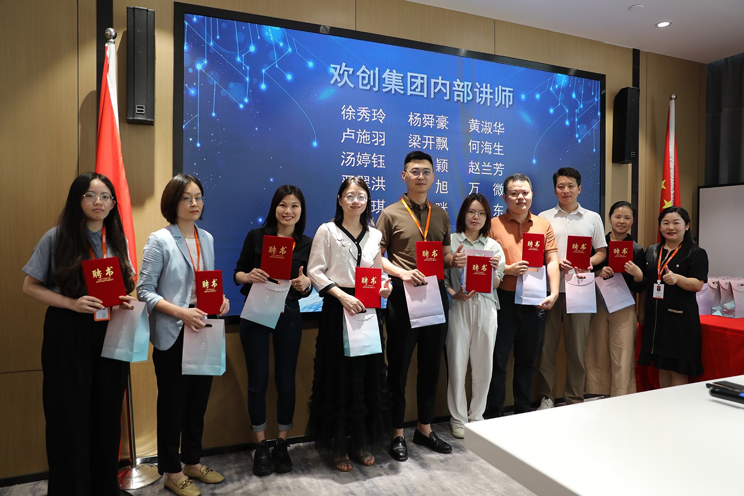 每一张聘书,都彰显着责任与担当、专业与成长、自豪与感动。它记录着讲师们对企业组织发展、业务助力、人才孵化、培训管理的历程,形成欢乐学习、良性竞争的公司氛围,为欢创集团实现人才发展做出巨大贡献。此时此刻,每一位讲师都是最特别的、最闪光的,每一个人的印记都在这里定格。